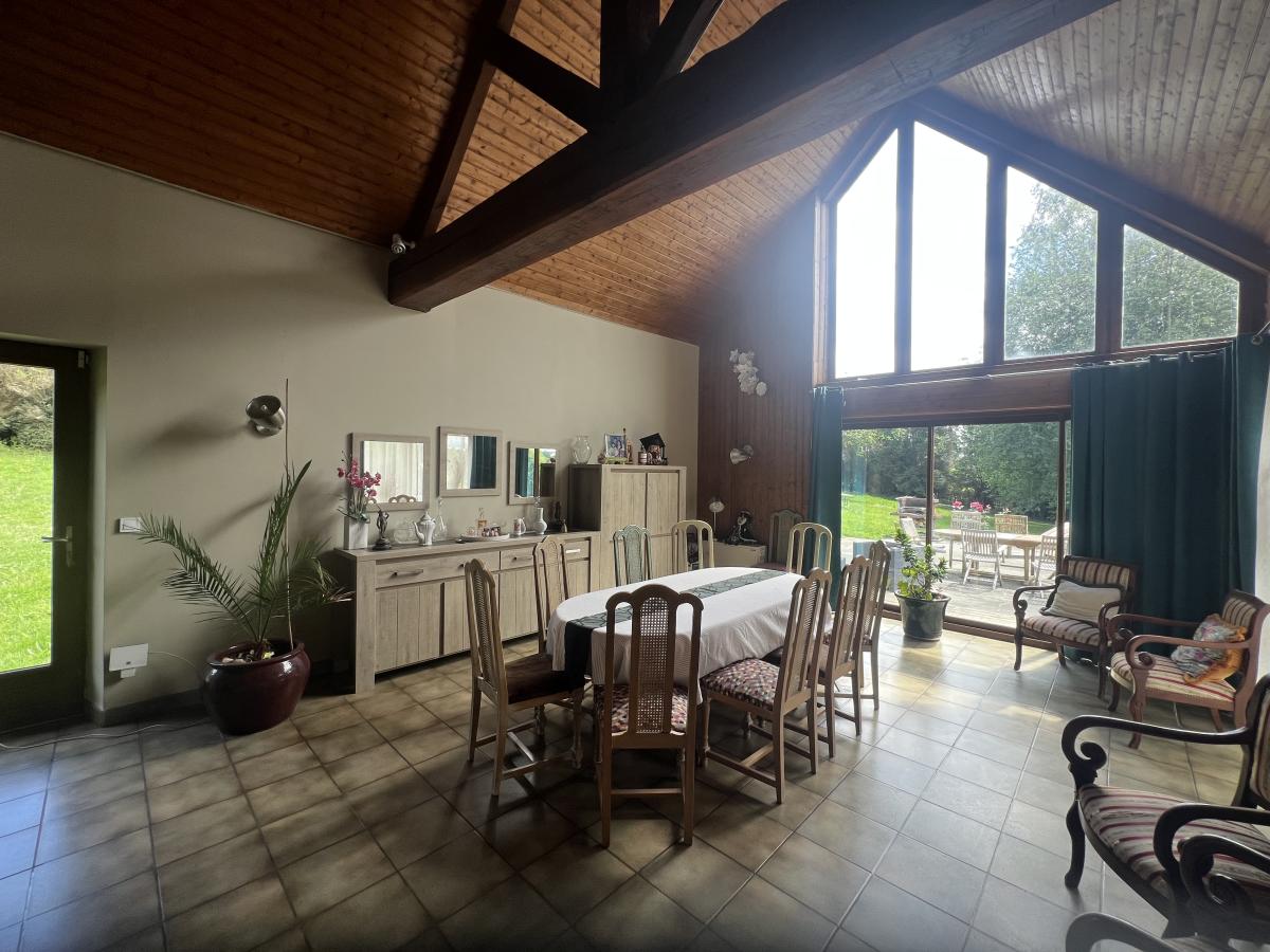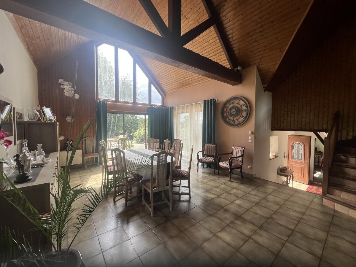 . Au RDC : entrée, vaste cuisine aménagée avec poêle à granulés, séjour plafond cathédrale avec cheminée, chambre, salle d'eau, WC.