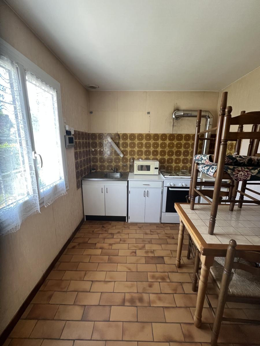 La maison de 48 m² comprend séjour, cuisine, chambre, salle d'eau, WC séparés.