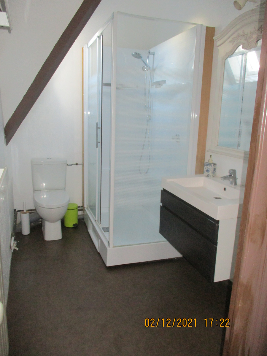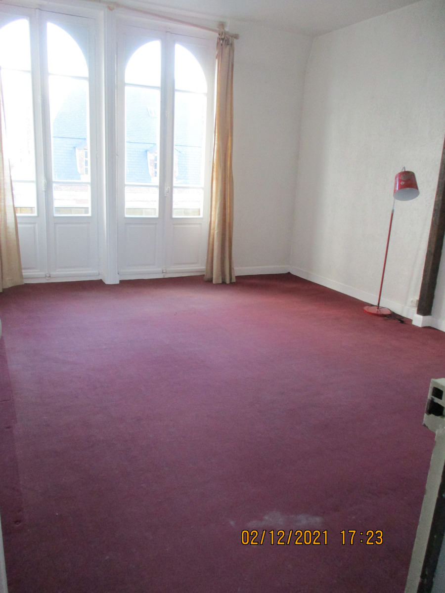 Appartement centre-ville, situé au 2ème étage, loué à l'année, loyer : 400 €/mois., comprenant : Entrée, cuisine ouverte sur salle à manger - salon - chambre avec dressing - Salle d'eau avec WC - A l'étage : deux chambres mansardées. Chauffage central gaz de ville -Cave. Accès au jardin. Menuiseries bois avec survitrage. soumis au statut de la copropriété. Trois lots. Charges 580 €/an. Syndic bénévole. “Les informations sur les risques auxquels ce bien est exposé sont disponibles sur le site Géorisques : www.georisques.gouv.fr