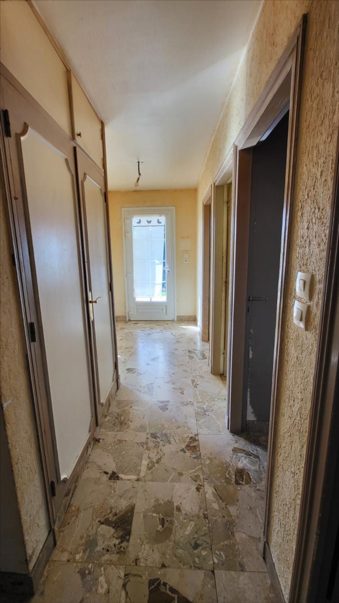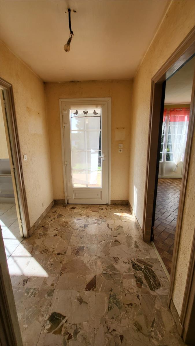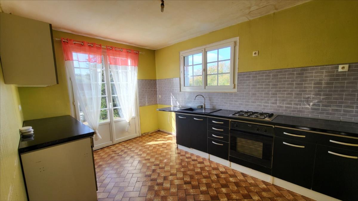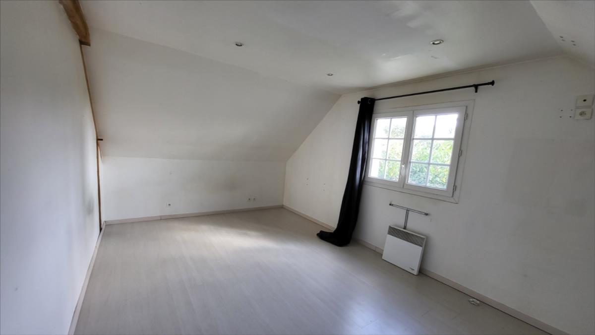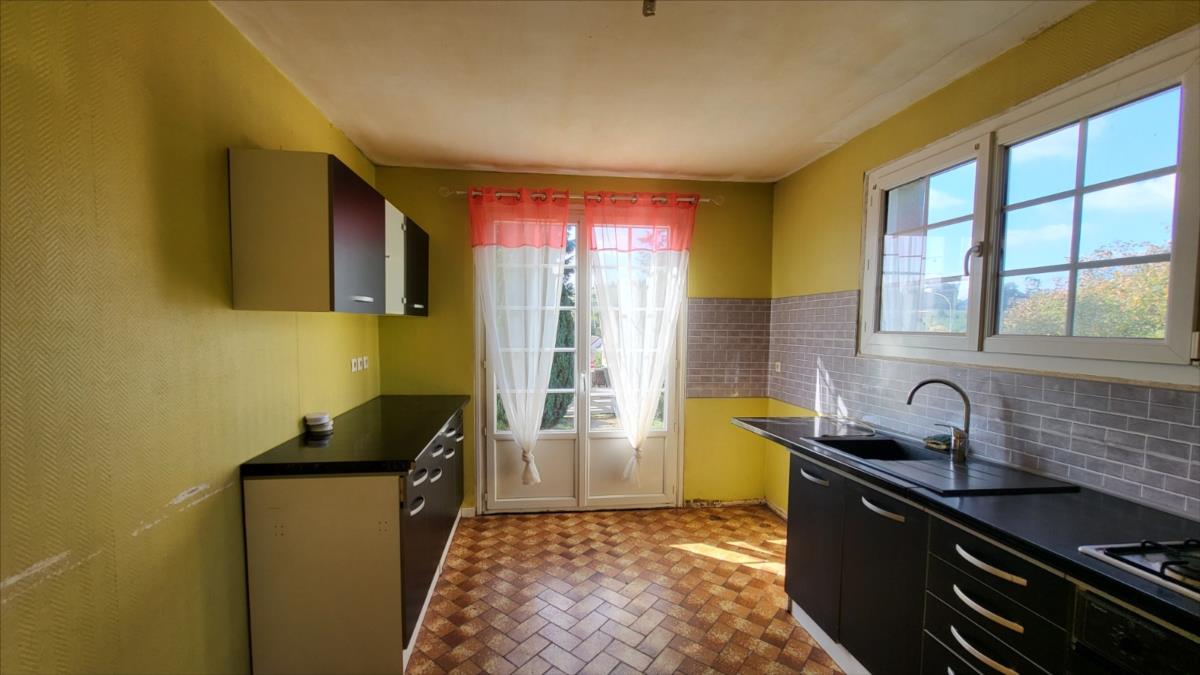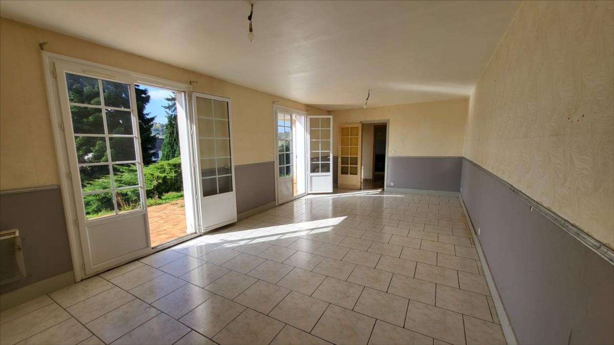 En sortie de ville, dans un quartier résidentiel, pavillon de 128 m² comprenant entrée, séjour, cuisine aménagée, wc, deux chambres, bureau, et salle de bains. A l'étage mansardé : couloir desservant une chambre et deux pièces à usage de bureau ou petite chambre, et une pièce pour salle d'eau à finir de rénover. Sous-sol complet carrelé avec partie garage, et buanderie. Double vitrage PVC ; chauffage électrique.