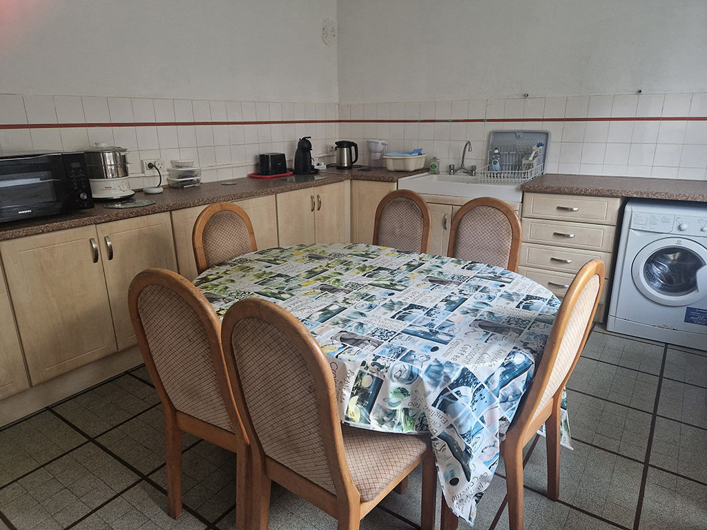 Au rez-de-chaussée, une entrée distribue d’un côté une pièce à vivre avec cheminée, de l’autre une cuisine prolongée par une chambre ouverte sur le jardin.