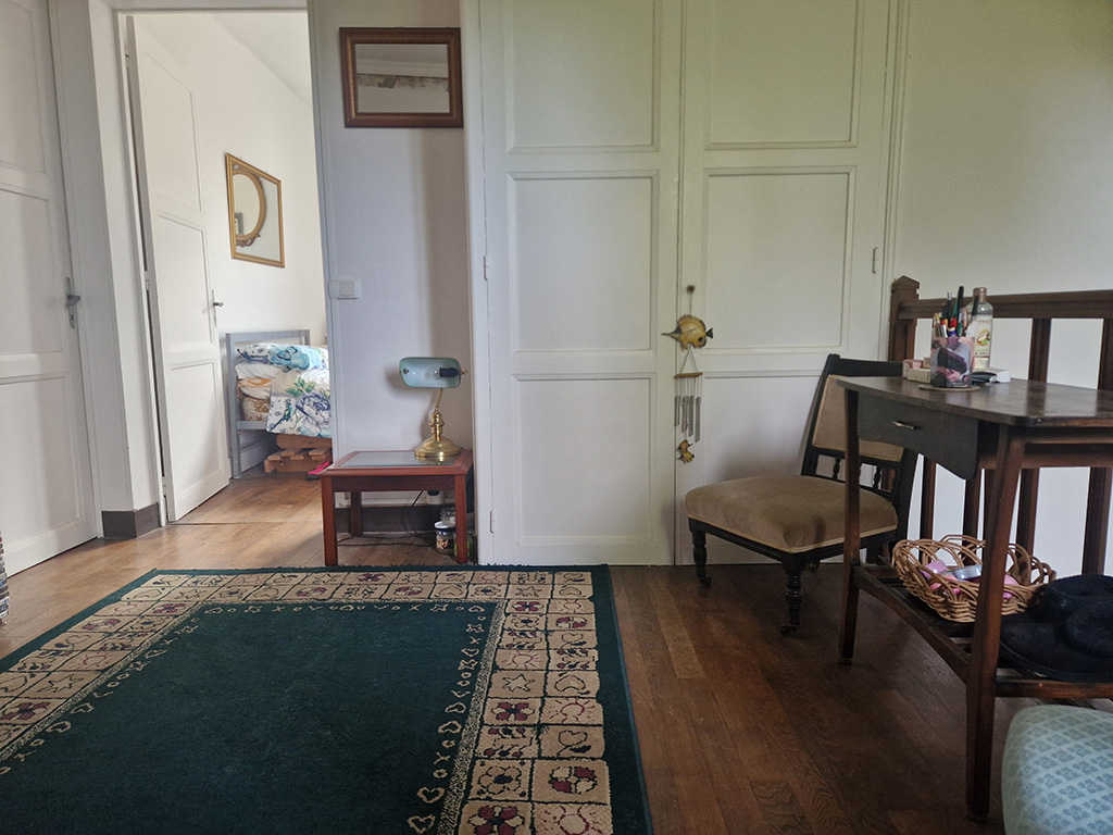 À l’étage, un palier mène à une vaste chambre avec dressing et à deux chambres plus intimistes.
