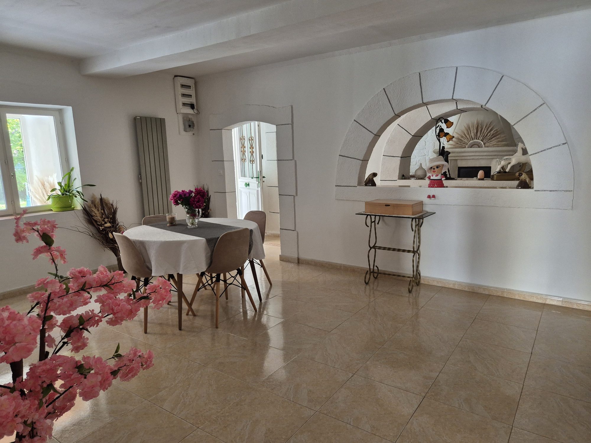 Elle comprend au rez-de-chaussée : une véranda, une entrée, un salon avec insert, une salle à manger, une cuisine aménagée équipée, une buanderie, une salle de bains (baignoire et douche), un WC avec lave-mains et une chambre ;