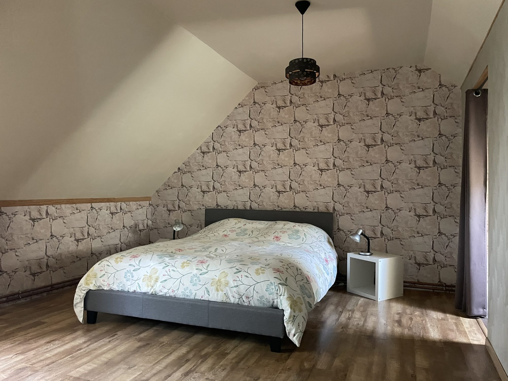 Secteur MORTAGNE AU PERCHE, maison rénovée sur 9400 m² de terrain. Bel espace de vie avec grande cuisine aménagée et séjour/salon avec poêle à bois, 4 chambres (dont une en rez-de-chaussée avec salle de bains) et salle d'eau/WC. Chauffage gaz et pompe à chaleur. Dépendance à la suite. Ancien fournir. Cour, jardin et prairie.