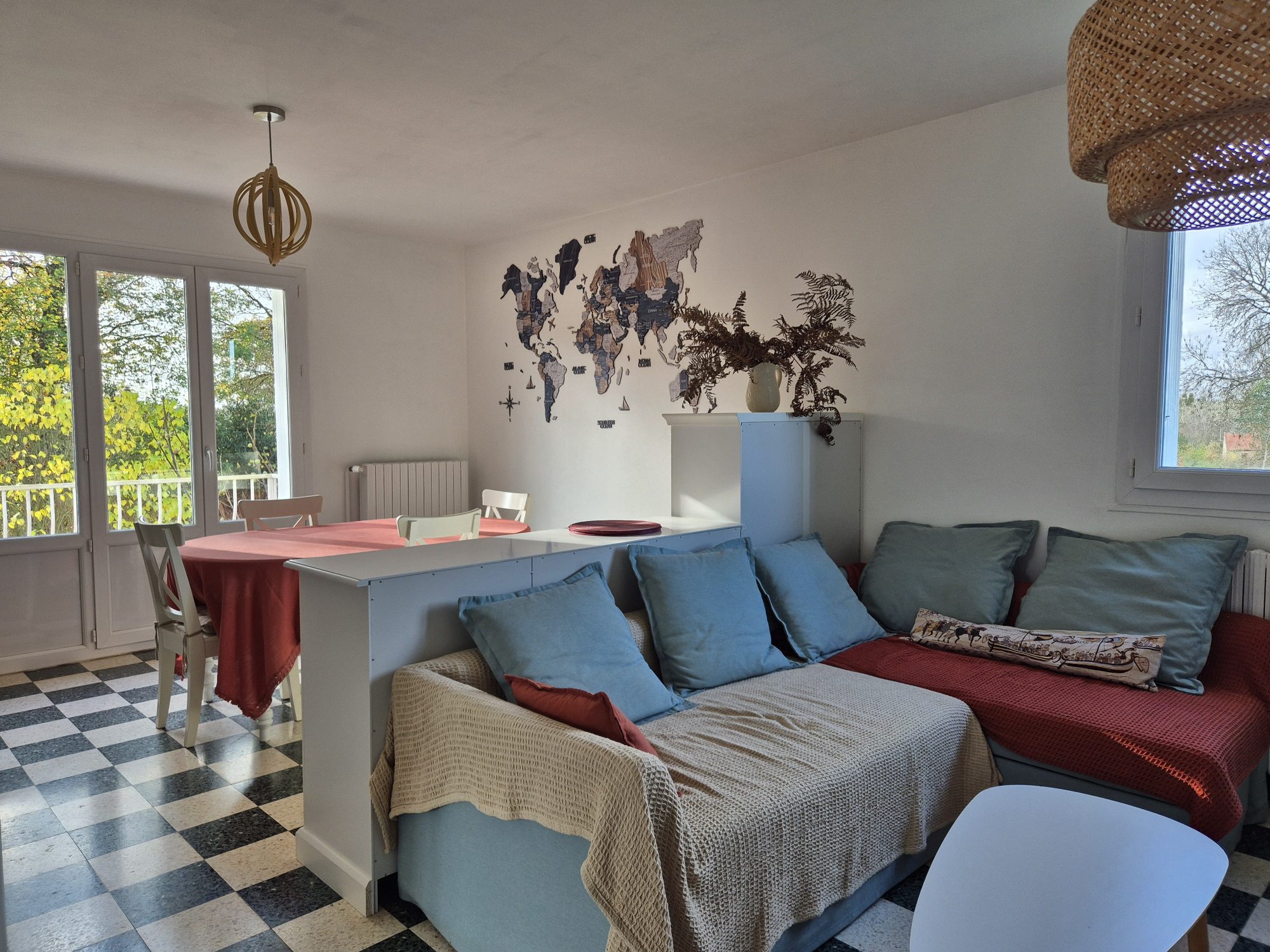 Elle comprend au rez-de-chaussée : une entrée, un séjour avec insert et balcon, une cuisine aménagée, trois chambres dont une avec un point d'eau, une salle de bains et un WC.