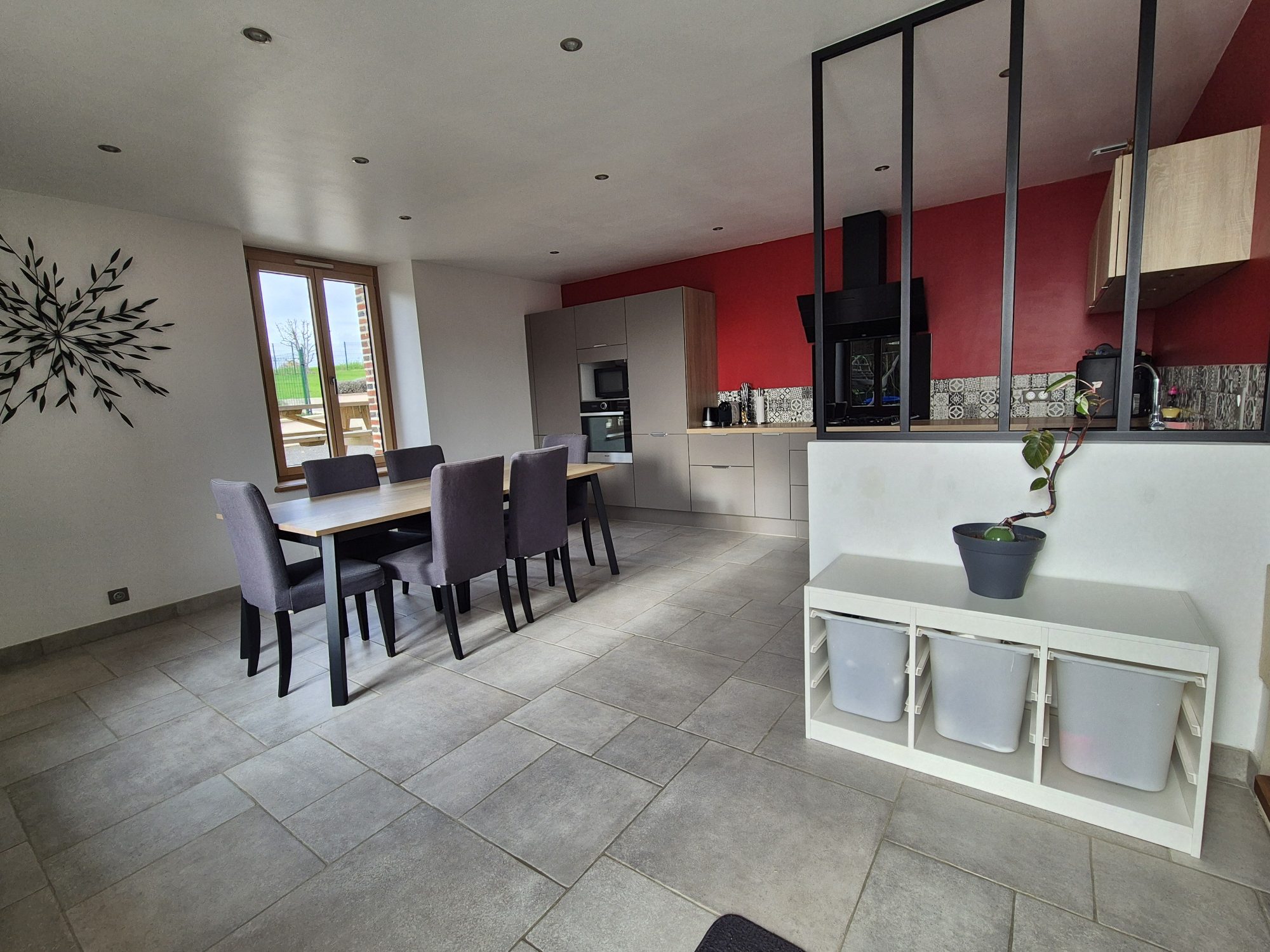 Elle se compose au rez-de-chaussée : d’une cuisine dinatoire aménagée et équipée, ouverte sur un salon agrémenté d’un poêle à granulés, ainsi que d’une chambre, d’une salle d’eau et d’un WC.