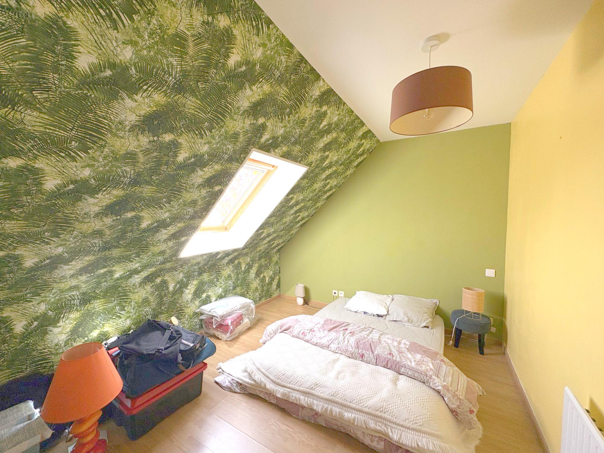 Au rez-de-chaussée : une entrée desservant l'escalier de l'étage, WC, un salon-séjour avec poêle à granulés ouvert sur une cuisine aménagée et équipée.