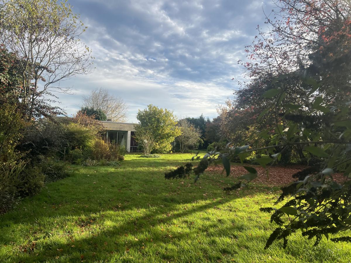 BIEVILLE BEUVILLE - CAEN nord bus de ville - HORS LOTISSEMENT - Atypique maison d'architecte de plain pied de 166 m2, comprenant entrée, séjour salon avec cheminée 46 m2, cuisine, 5 chambres dont une avec salle de bains, 2 salles d'eau, bureau, arrière cuisine, wc. Garage attenant de 40 m2. Double garage en annexe. Terrain 3800 m2. Travaux à prévoir. DPE : F