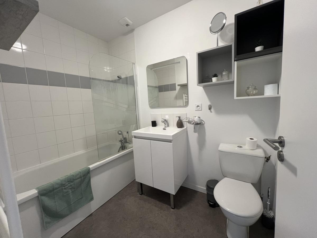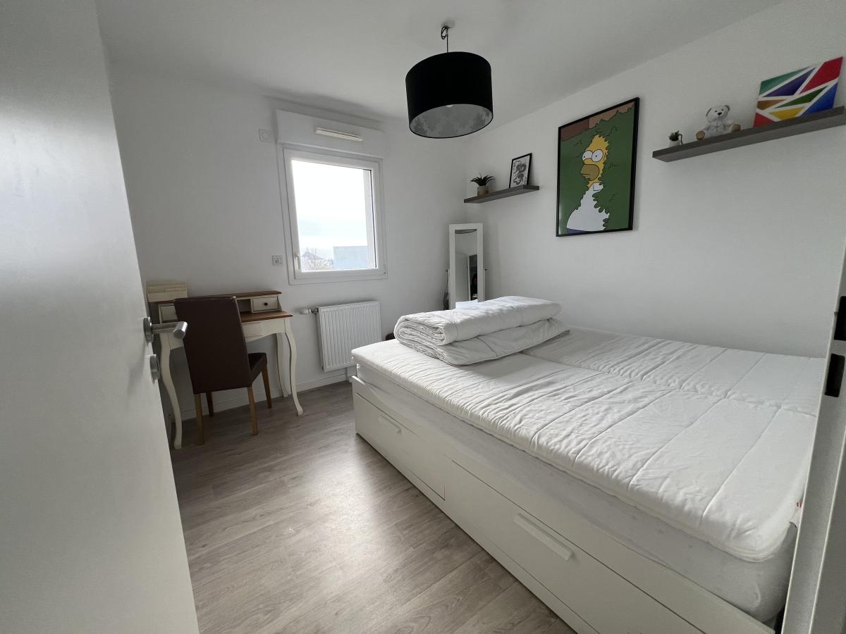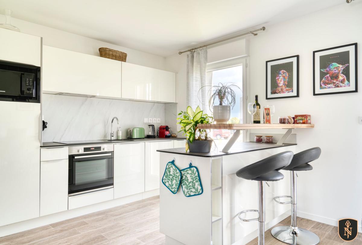 CAMBES EN PLAINE - CAEN NORD bus de ville, ravissante maison 2019 mitoyenne d'un côté, comprenant entrée avec placards, cuisine aménagée ouverte sur séjour salon 35 m2, 3 chambres, salle de bains avec wc, buanderie, wc avec lave mains. Garage attenant. Terrain clos de 240 m2. Chauffage gaz de ville. Parfait état général. DPE : C