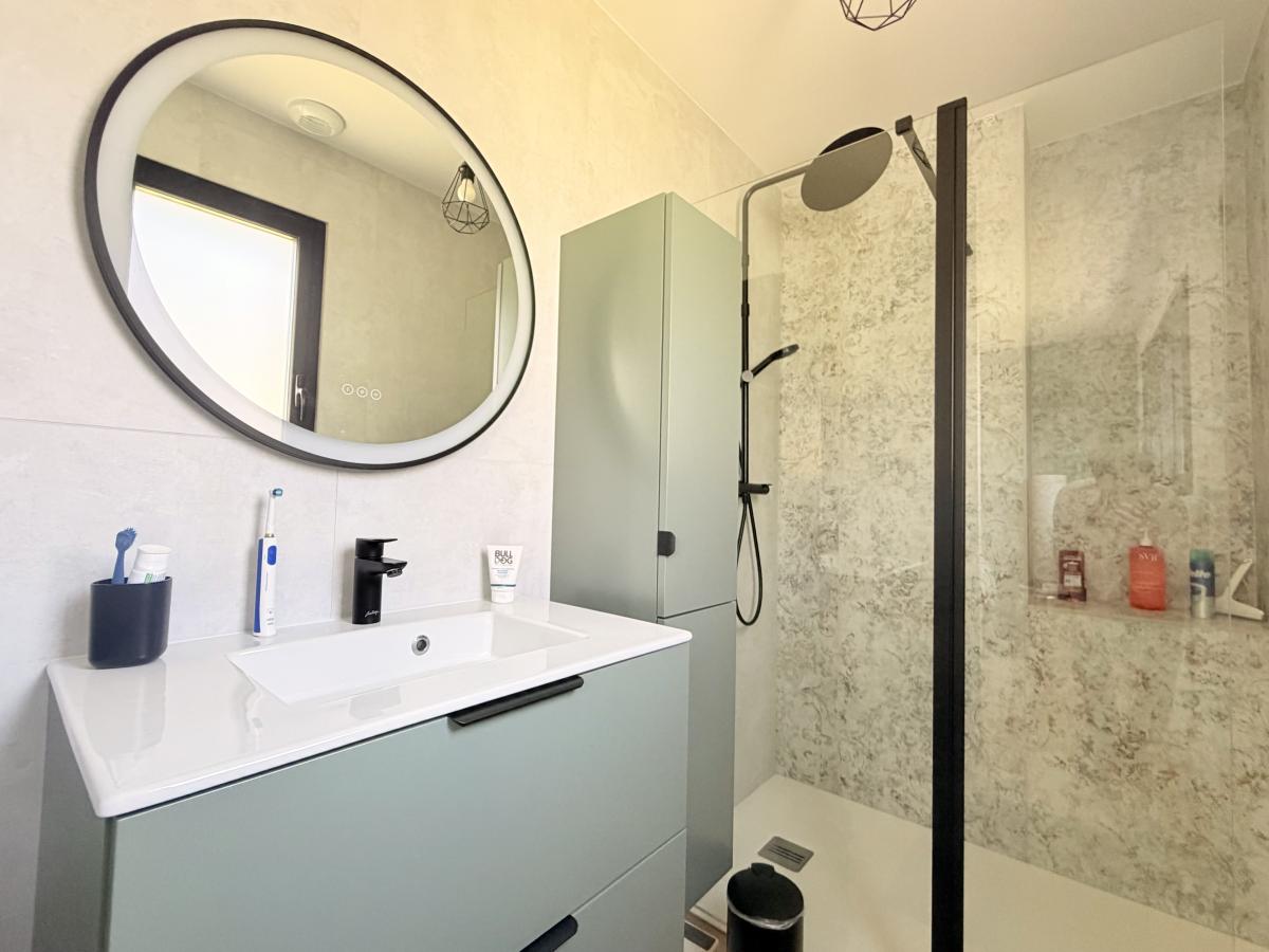 Très belle prestation, séjour très lumineux avec grandes ouvertures. Très bonne isolation et pompe à chaleur. DPE : A
