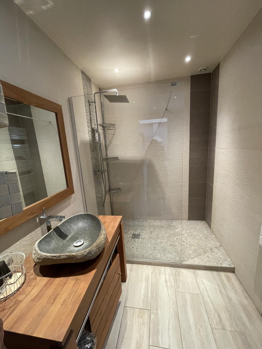 - au RDC : pièce de vie avec cheminée, cuisine A/E récente, salle d'eau à l'italienne récente, wc, buanderie,