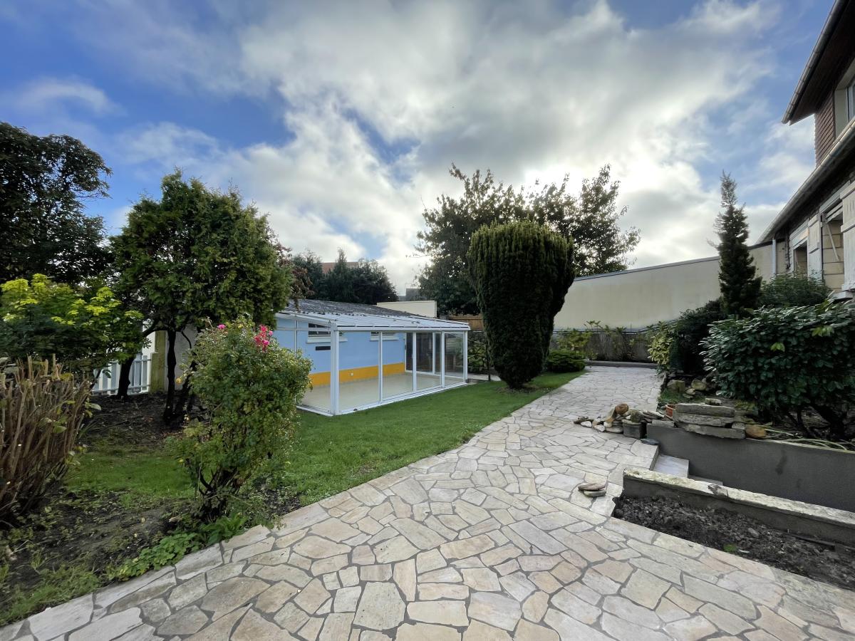 A l'extérieur grand garage avec véranda attenante. Jardin clos d'environ 488 m².