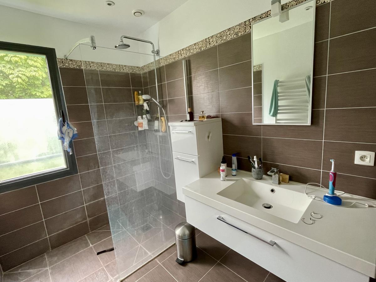 Une extension réalisée en 2009 vient enrichir les prestations de cette maison avec une spacieuse suite parentale d’environ 26 m², disposant de sa salle d’eau privative avec wc et dressing.