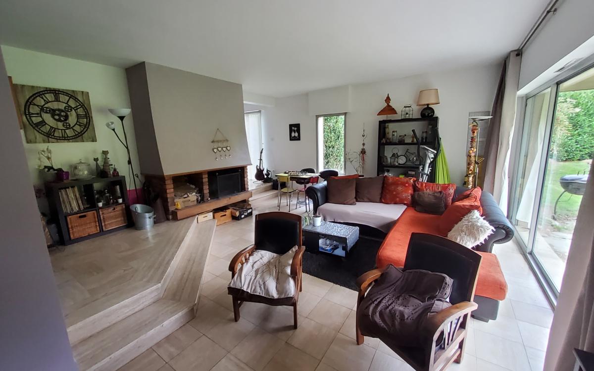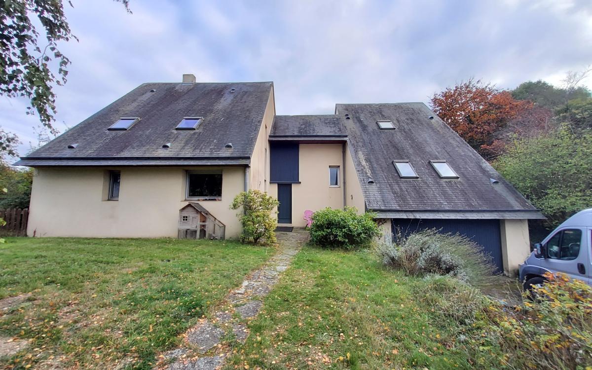 A Thury-Harcourt (CALVADOS) 14220. Une maison d'architecte située au calme comprenant : - au rez-de-chaussée : cuisine, salon avec cheminée, salle à manger, chambre, bureau, salle de bains et W.C, garage. - à l'entresol : chambre avec salle de bains, wc, chambre. - au premier étage : palier desservant trois chambres, salle de bains, W.C, buanderie. - au dernier demi niveau : une chambre. Terrain sans vis à vis de 4572 m².