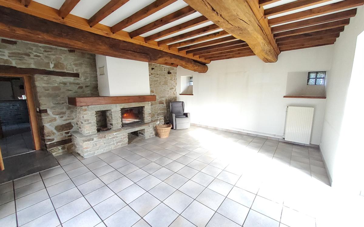 - au rez-de-chaussée : entrée, pièce à vivre comprenant salon avec cheminée et cuisine ouverte, salon avec cheminée insert, salle d'eau, wc, arrière cuisine, pièce au dessus.