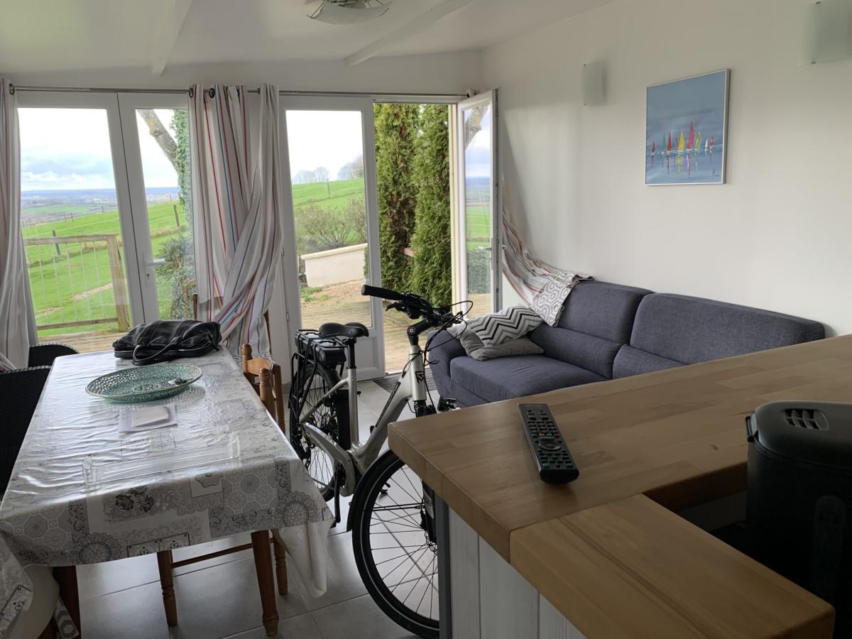 Gîte de 35m² de plain-pied comprenant pièce de vie, 2 petites chambres et salle d'eau.