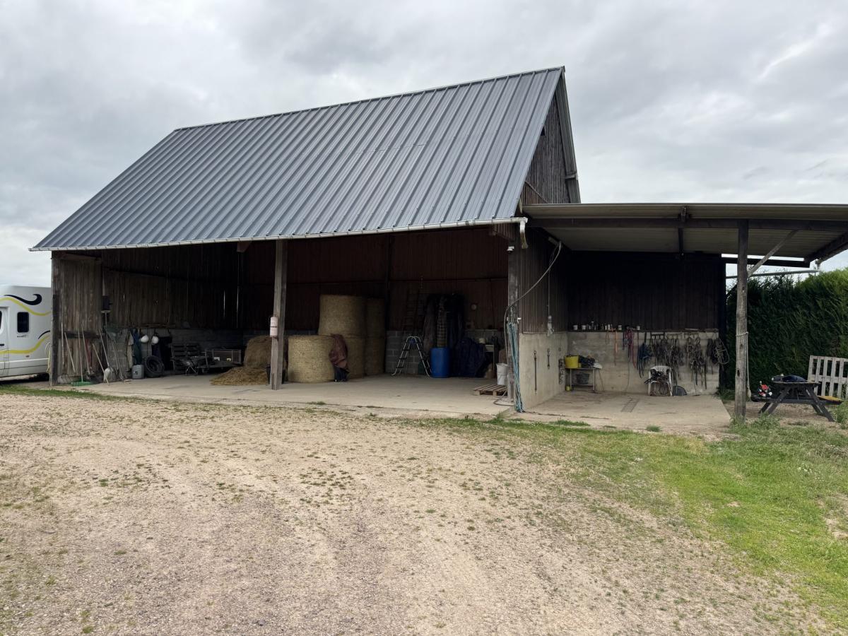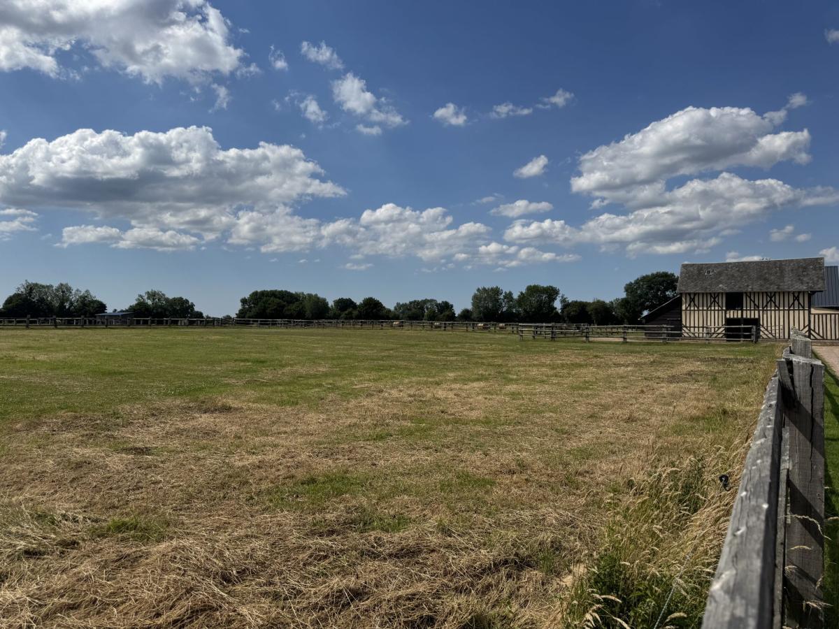 LISIEUX 10km Haras de 7,9ha plats, comprenant: Maison d'environ 120m² + grenier aménageable de 49m²: RDC: bureau, cuisine, séjour-salon, wc. 1er: couloir, 3 chambres, 2 salles d'eau et wc. 2nd: grenier aménageable Dépendance avec 7 boxes, sellerie et grenier Hangar de 90m² Bâtiment à usage de garage, cellier avec grenier Terrain divisé en 6 grands paddocks avec abris et eau.