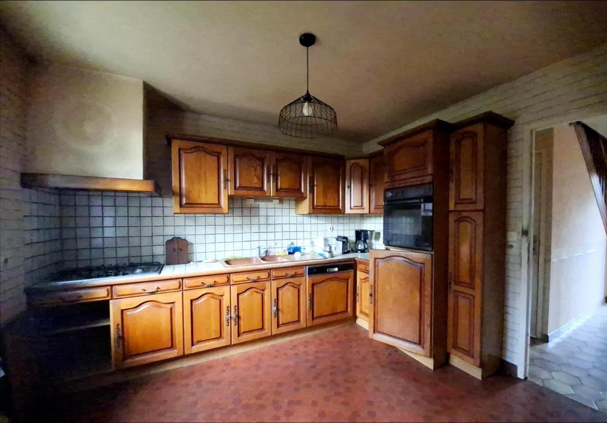 - au rez-de-chaussée : entrée, cuisine aménagée, salon-séjour avec cheminée foyer ouvert, couloir desservant une chambre, salle de bains et WC indépendants.