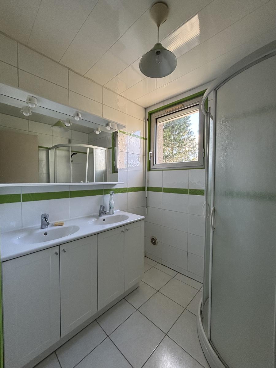 - A l’étage : palier/couloir, trois chambres (17.4m², 11m² et 8.3m²), salle de douche.