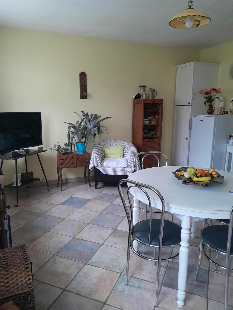 Au rez-de-chaussée : une véranda, une entrée, un grand séjour/salon, une cuisine aménagée et équipée, une salle de bains, un wc, une chambre avec placards.