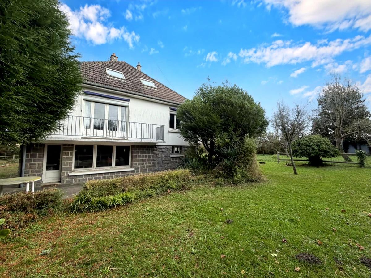 Beau jardin autour planté et arboré avec terrasse.