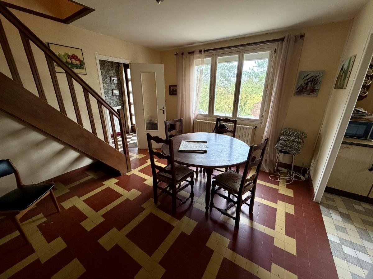 - Au premier étage: entrée, salle à manger avec cuisine ouverte aménagée, séjour avec cheminée et petit salon attenant (possibilité de chambre supplémentaire), dégagement avec placards, deux chambres, salle de bains, WC.