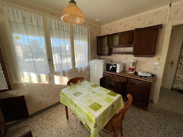 RDC surélevé: entrée/dégagement avec placards, cuisine, séjour salon en L avec balcon, salle de bains (vasque/bidet/baignoire), 3 chambres (deux avec placards et une avec un coin lavabo).