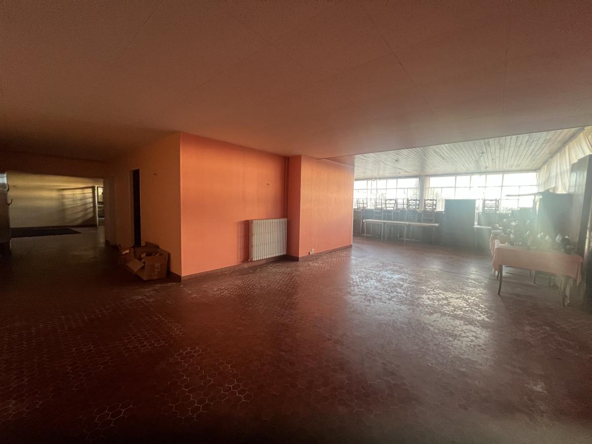 LA FERTE MACE en centre ville : ancien hôtel-restaurant (vendu sans fonds de commerce et sans licence) comprenant au RDC bar, bureau, cuisine, chambre froide, séjour avec cheminée, réception donnant sur terrasse, salle de restaurant, salle de réception, réserve, buanderie, lingerie, WC. Au sous-sol : sanitaires (3 WC et lavabos), cave à vin, chaufferie et réserve. A l 'étage (s'y accédant par 2 escaliers) : couloir desservant six chambres avec salle de bains et WC privatifs, appartement privé de 2 chambres, bureau et SDB, 2 pièces au-dessus de la lingerie. Vaste parking. Dépendance à usage de grange et hangar. Situation idéale pour activité commerciale type restauration, location de salles/chambres ou création de logements d'habitation. Terrain de 3900 m².