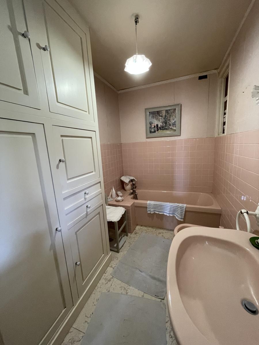 . A l'étage : palier, 3 chambres dont une de 27 m² pouvant être divisée, salle de bains, WC et lingerie avec placard.