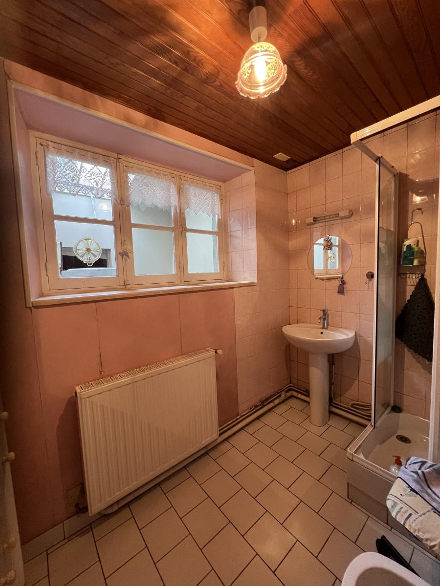 Cave, chaufferie et garage derrière la maison. Chauffage au fuel, tout à l'égout, fenêtres bois et PVC.