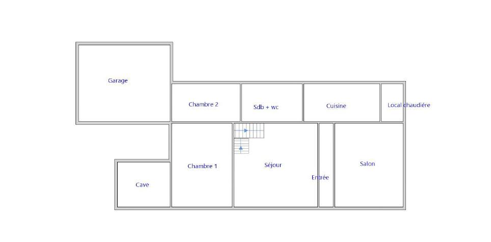 - en rdc : entrée/couloir - une salle à manger avec cheminée - un salon - une cave - deux chambres - une salle de bains avec wc - une cuisine - chaufferie.