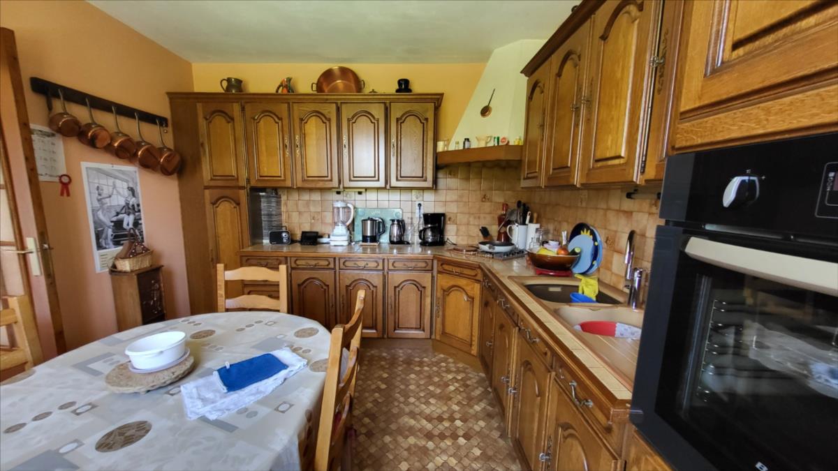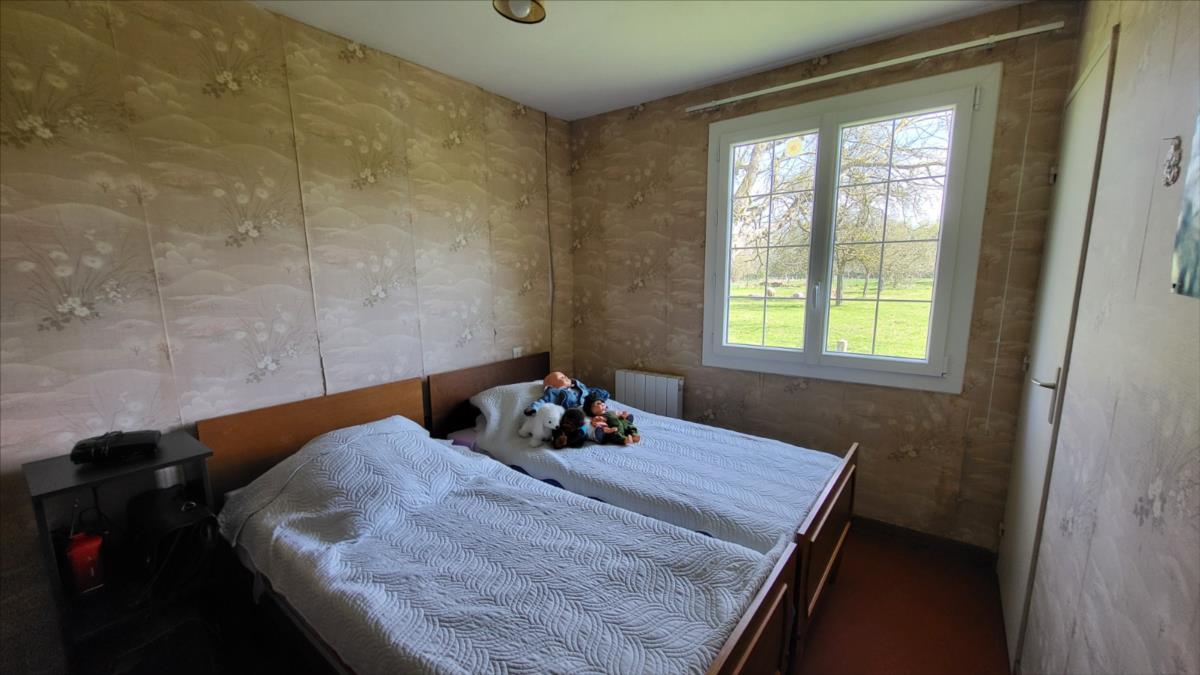 Propriété sur 3ha plats avec dépendances en campagne, au calme. Pavillon de plain-pied bien entretenu  : entrée avec placard, séjour avec cheminée équipée d'un insert, cuisine aménagée rustique, couloir desservant trois chambres, salle de bains, wc séparés. Garage attenant avec point d'eau. Trois dépendances dont un ancien four à pain.