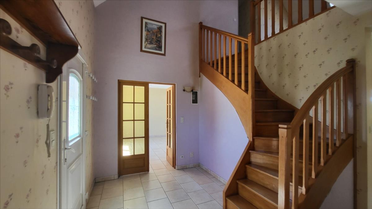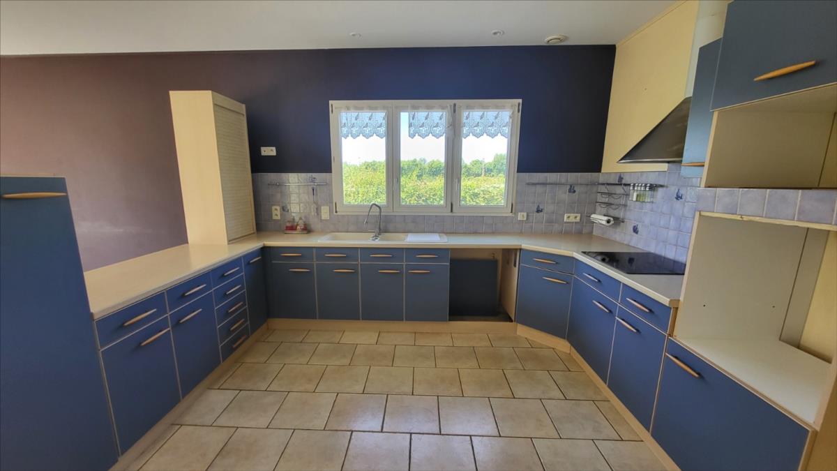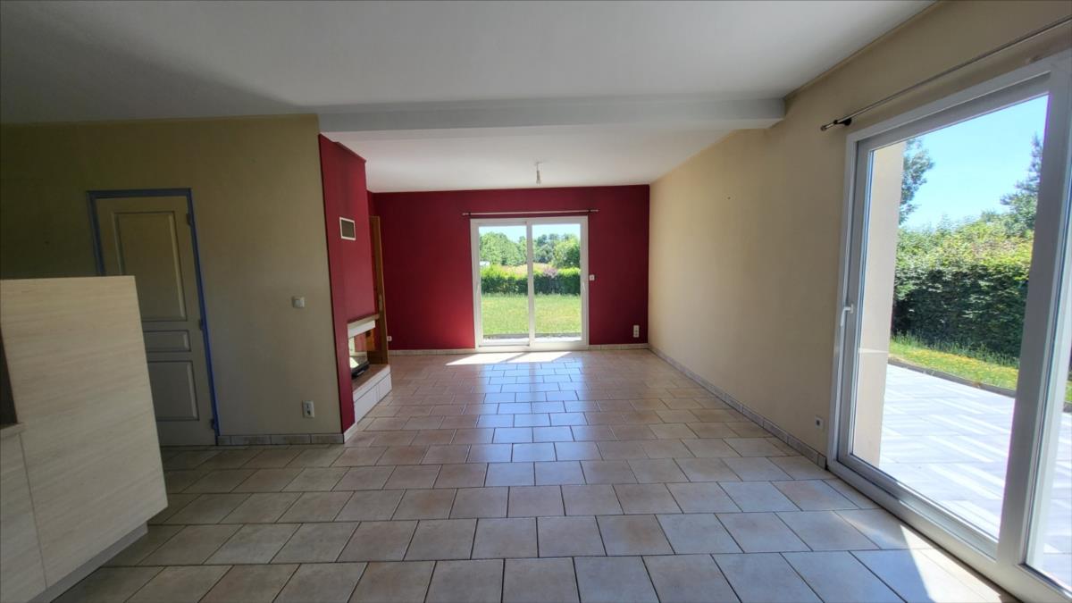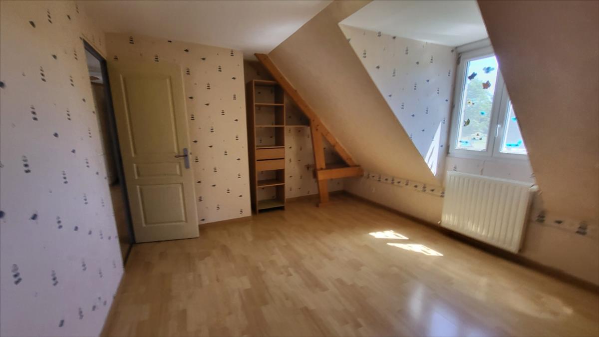Dans un quartier au calme, et proche de quelques commerces, belle maison d'environ 135 m² bien entretenue comprenant : belle entrée avec escalier, séjour avec cheminée équipée d'un insert ouvert sur cuisine aménagée et équipée (réfrigérateur, hotte aspirante, plaque de cuisson), une chambre avec salle de douche à l'italienne, wc séparés, bureau ou chambre avec placards ; à l'étage : pièce-mezzanine surplombant l'entrée, trois chambres, wc séparés, grande salle de bains avec baignoire et douche), placards et radiateurs sèche serviettes ; chauffage au fioul + cheminée ; Volets roulants;  sous-sol complet avec adoucisseur d'eau comprenant buanderie avec point d'eau, garage, cave à vin l'ensemble sur 1030 m² de jardin avec terrasse.