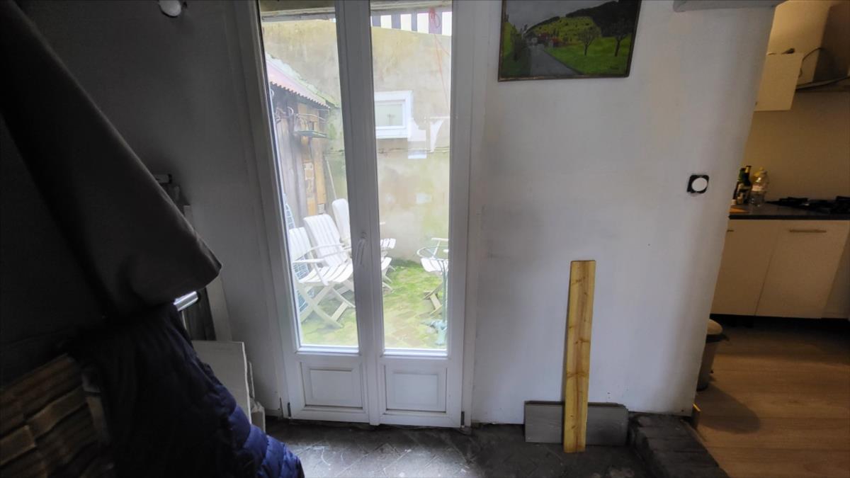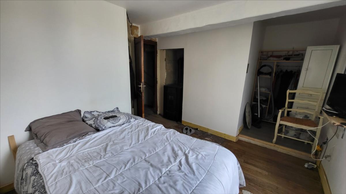 Maison mitoyenne rénovée : Entrée avec poêle à granulés ouvert sur séjour avec escalier ancien, petite cuisine aménagée; au 1er étage : petit palier desservant une chambre avec salle de bains et wc privatifs avec pompe à chaleur air/air ; au 2ème étage : une chambre mandardée à finir (arrivée d'eau, et électricité). Les informations sur les risques auxquels ce bien est exposé sont disponibles sur le site Géorisques : www. georisques. gouv. fr