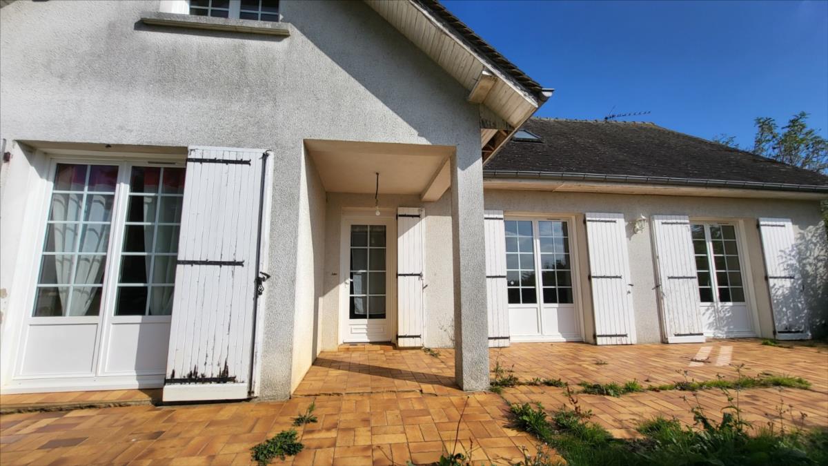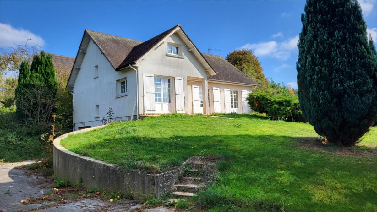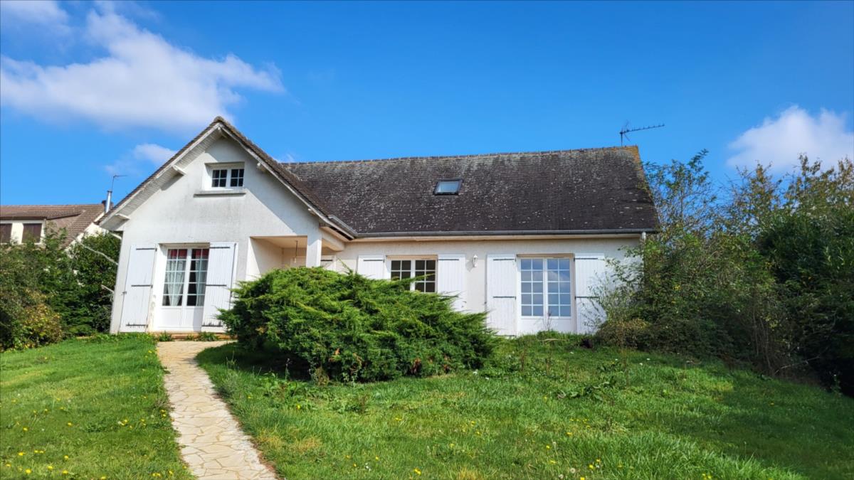 En sortie de ville, dans un quartier résidentiel, pavillon de 128 m² comprenant entrée, séjour, cuisine aménagée, wc, deux chambres, bureau, et salle de bains. A l'étage mansardé : couloir desservant une chambre et deux pièces à usage de bureau ou petite chambre, et une pièce pour salle d'eau à finir de rénover. Sous-sol complet carrelé avec partie garage, et buanderie. Double vitrage PVC ; chauffage électrique.