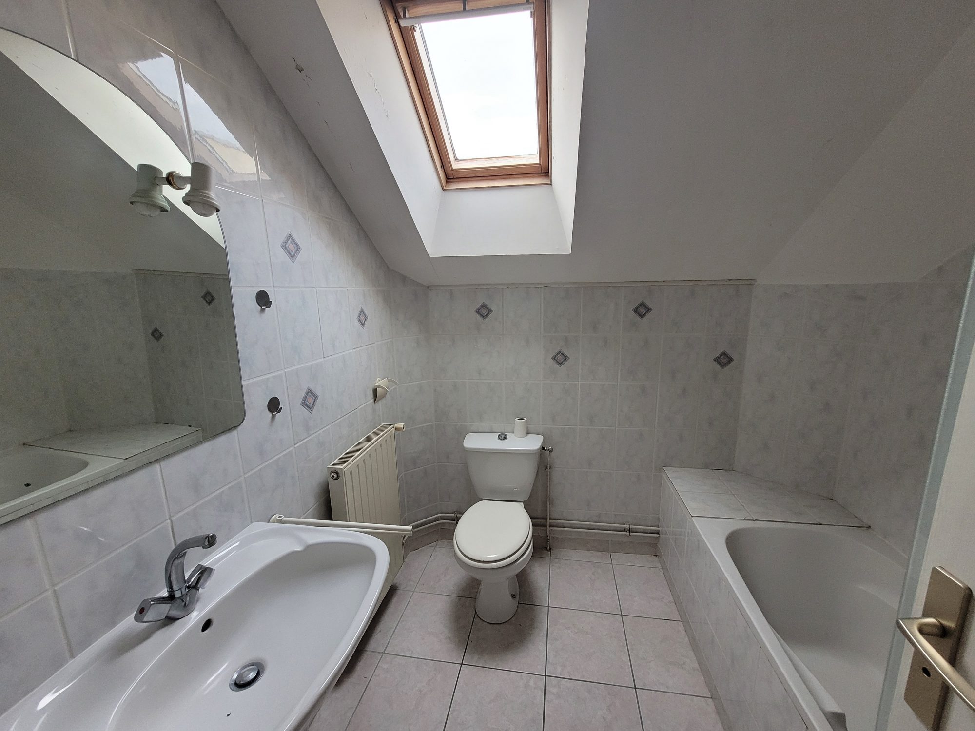 Second appartement (libre) composé d’une entrée, WC avec LV, pièce de vie avec coin cuisine. A l’étage : palier, salle de bains avec WC, chambre et pièce à usage de chambre (56.84m2).