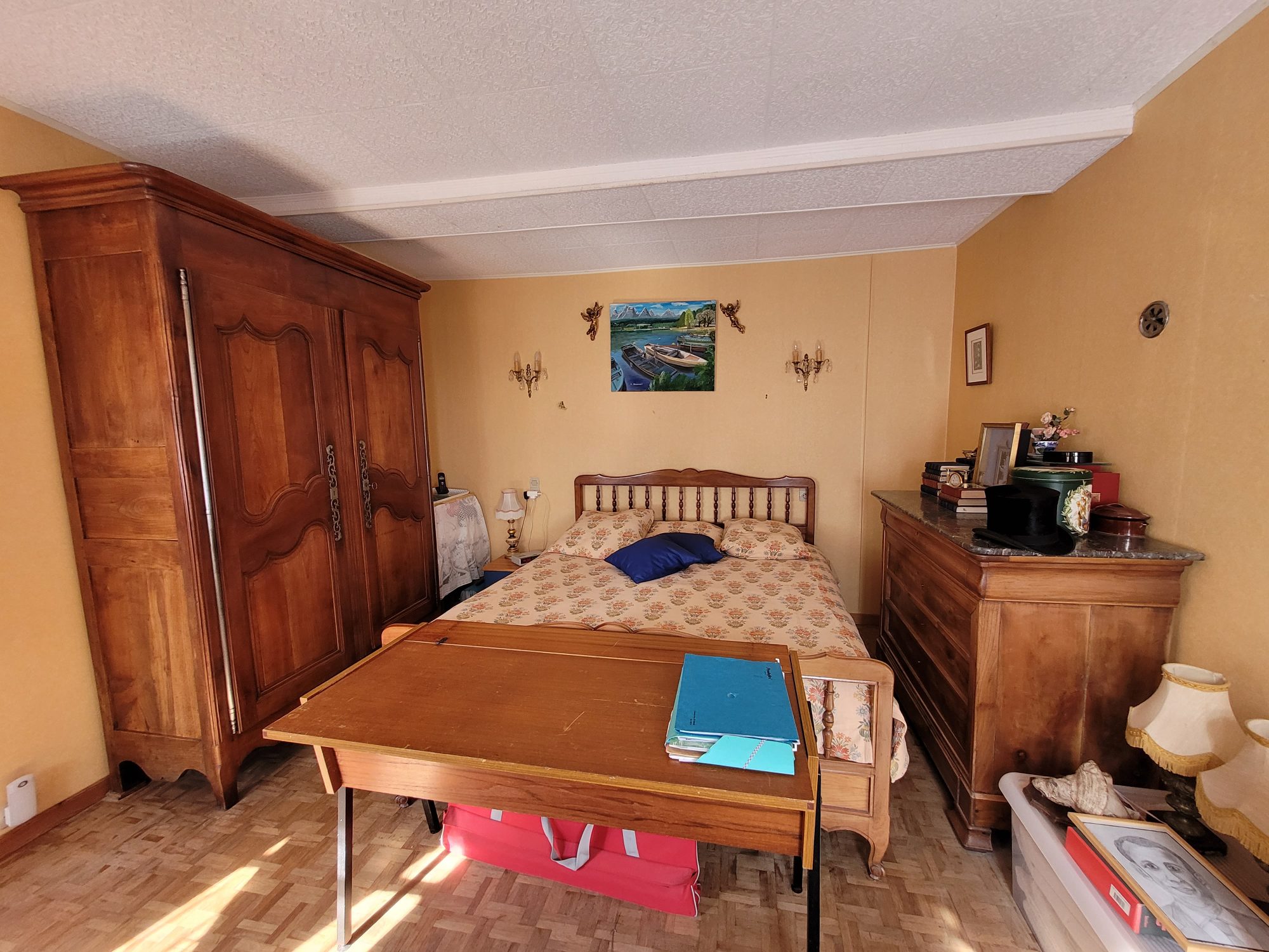 En village, maison ancienne comprenant une pièce de vie avec coin cuisine aménagée (cheminée avec insert), chambre, couloir, WC, salle d’eau, cellier/cave et pièce à usage de salle de loisirs ou chambre. A l’étage : deux chambres. Garage (porte motorisée) et grenier. Abri de jardin, bûcher, le tout donnant sur une cour avec puits et jardin. Maison en bon état de gros œuvre. Rafraichissement à prévoir à l'étage. Chauffage électrique, tout à l'égout. Les informations sur les risques auxquels ce bien est exposé sont disponibles sur le site Géorisques : georisques.gouv.fr